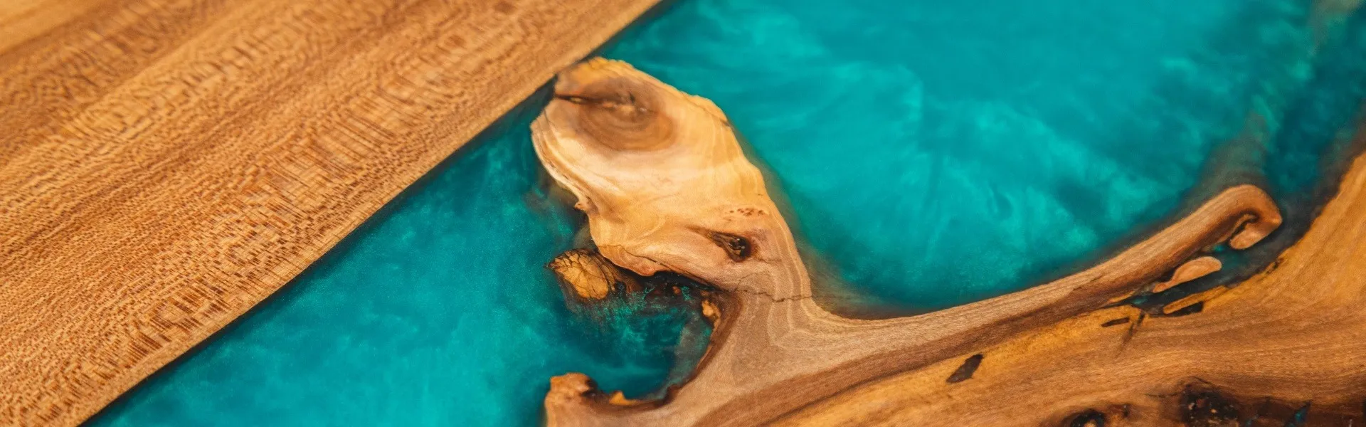 RESINFURNITURE光を美しく反射する樹脂の層は、天然の木材と重なり合うことで不思議な奥行きを生み出します。まるで水面を切り取ったかのような瑞々しい表情は、見る角度によって様々に変化するのが魅力…